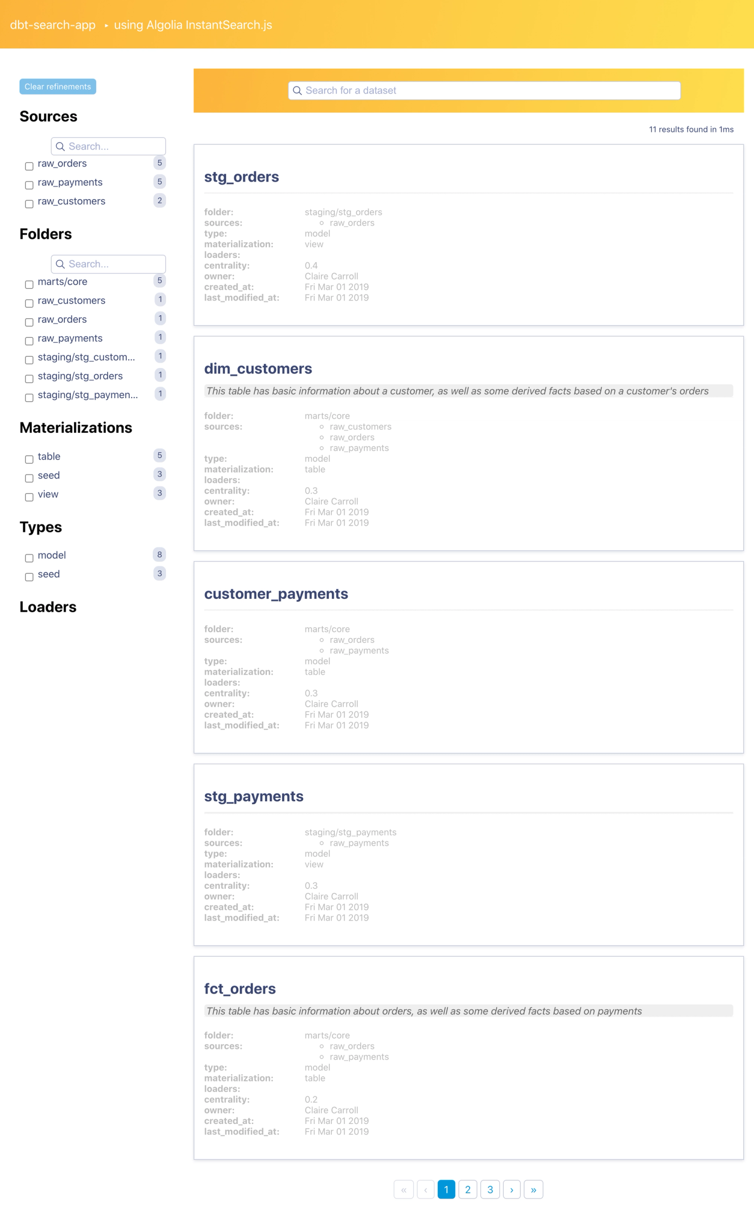 There you have it! A lightweight data governance tool on top of dbt artifacts and Algolia. I hope this showed you that data governance doesn't need to be a complicated topic, and that by using a knowledge graph of metadata, you can get a head start on your roadmap.